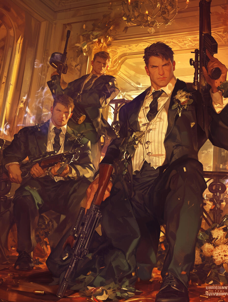 The New Mafia has 3 different Families controlling 3 different sections over the Bronx. Each Family helps one another as they focus on their own productions.Each Family produces a unique product that not only reinforces the Family’s own strength, but that of the others as well.The Molinari Family focuses on the production and storage of all food for the Families. The members of this Family are identified by the sharkskin style tuxedos that they wear.The Acqua Family specializes in the filtration and distribution of all water consumed by the 3 Families. They are identified by the Navy Blue tuxedos all of their members wear.The De Angelis Family is the sole producer of any and all weapons that the Families use. Their members are identified by their sleek, Black tuxedos with thin white lines vertically crossing their suits.Each rank of the Families is represented by a patch with a unique design that is placed on the left side of their chest. This is to symbolize being over their heart, indicating where their loyalties lie.Each Don is marked with a patch that contains the shape of a crown with a gold finish.The Underbosses are identified by a patch that contains a silver helm.All 3 Consiglieres are identified by their patches that display a bronze dove.The Caporegimes (or “Capos” for short) are marked with a patch that has a dark green helmet on it.And every single soldier is never seen without their patch that shows a beige bullet standing upright.The 3 Families are in such a deeply symbiotic relationship, that if you were to take out even ONE Family, the others would fall easily.